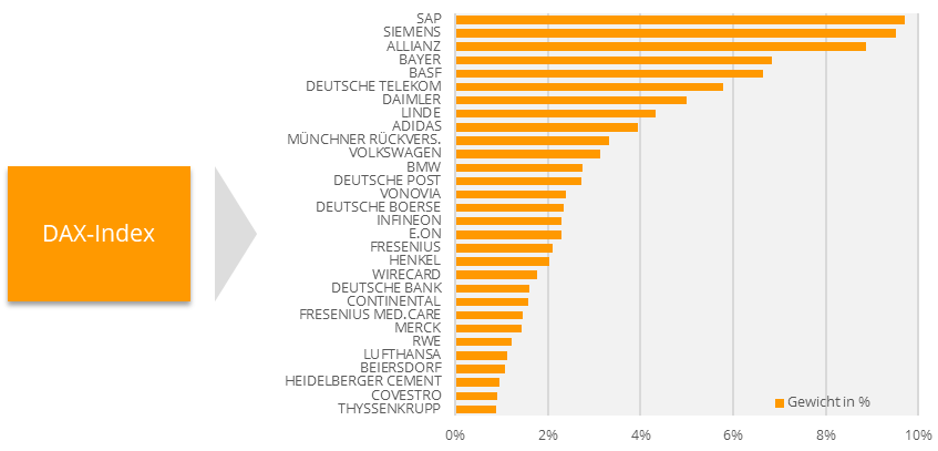 Ein Fonds ist ganz einfach gesagt ein „Paket“ aus mehreren Wertpapieren, Rohstoffen oder sonstigen Vermögenswerten. Die wahrscheinlich am weitest verbreitete Art der ETFs sind die Index Fonds also Fonds, die sich an einem Index orientieren. Ein Index, wie beispielsweise der DAX hat eine Performance, die sich durch die Performance der einzelnen Unternehmen zusammensetzt, die in dem Index gelistet sind. Steigt der DAX, steigt also auch ein ETF der den DAX abbildet. Das funktioniert, indem der Fondsverwalter dieselben Wertpapiere kauft, die in dem Index vorhanden sind und diese in den Fonds steckt. An unserem DAX Besipiel erklärt, müsste der Fondsverwalter also alle 30 Dax Werte kaufen und in ein „Paket“ stecken. Kauft man nun einen ETF kauft man quasi kleine Anteile aller Unternehmen, die in dem Index gelistet sind. Dadurch erreicht man die selbe Performance, wie der Leitindex, eben weil der Leitindex und der ETF aus den gleichen Bestandteilen (den gleichen Aktien) zusammengesetzt sind. (Von dieser Erklärung kann es Abweichungen geben aber zum Verstehen sollte diese Erklärung ausreichend detailliert sein.)